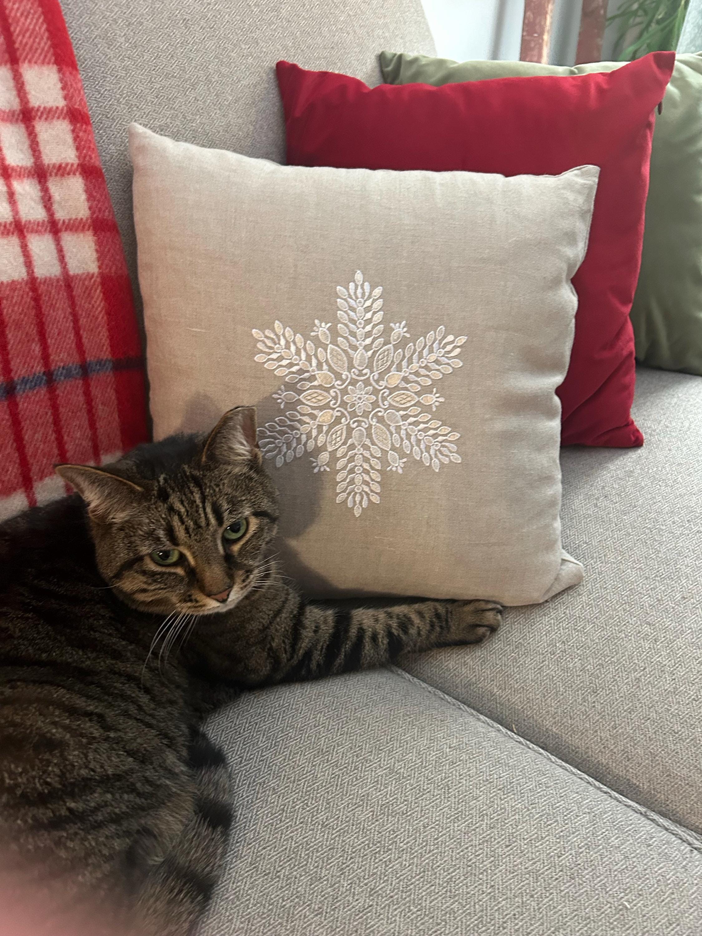 Dear Marty Grace, I just received my snowflake pillow! Oh, my, what can I say! It is just gorgeous and expertly crafted. Linen is my favorite fabric and the snowflake design is perfectly beautiful! The detail finishing inside is impeccably done as well. I am delighted beyond measure that I now have one of your lovely creations. Thank you so much and I appreciate all the emails showing the travel time. A most Happy New Year to you and many blessings to you and your business. Ina